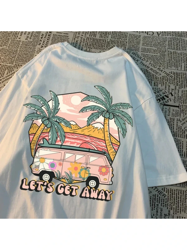 Beyaz Haydi Otobüs Alalım Tatilde Git Baskı leri Harajuku Nefes Tshirt Yaz bol tiş
