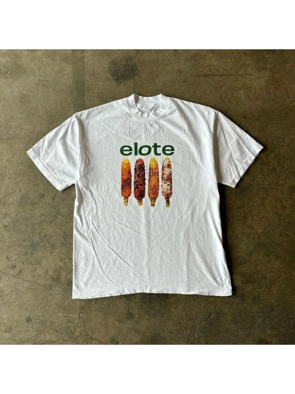 Beyaz Komik Elma Grafik Baskı Çok Yönlü Tembel Yaz Yuvarlak Düzenli Uzunluk