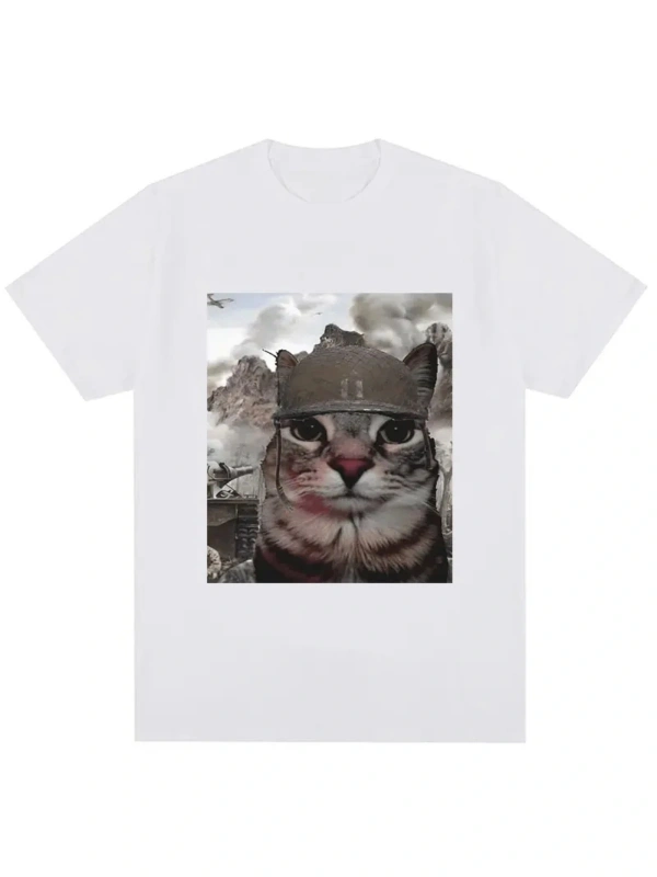 Beyaz Bin Yard Bakış Kedi Komik Meme Mizah Tarzı Vintage li T Kad