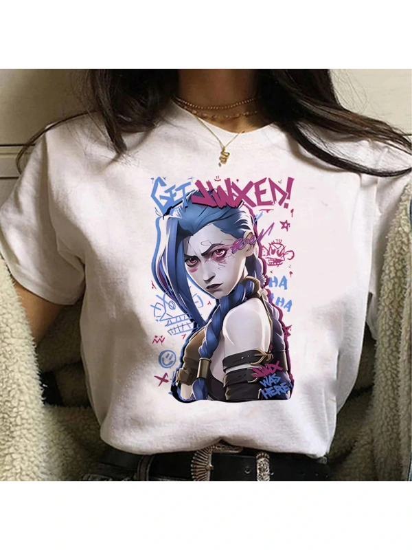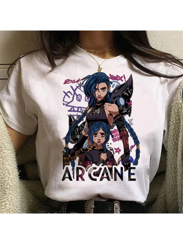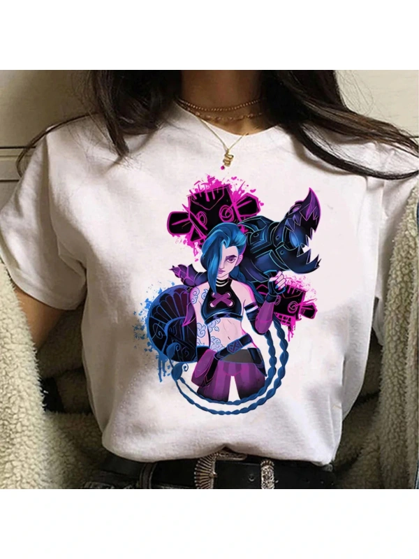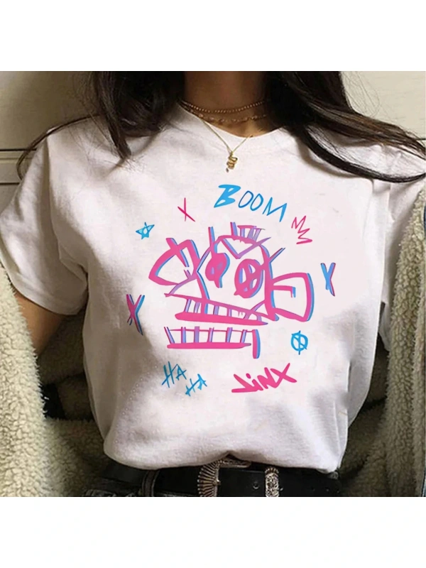 Beyaz Jinx Arcane Maymun Anime Cosplay Tees Unisex Grunge Estetik Ka