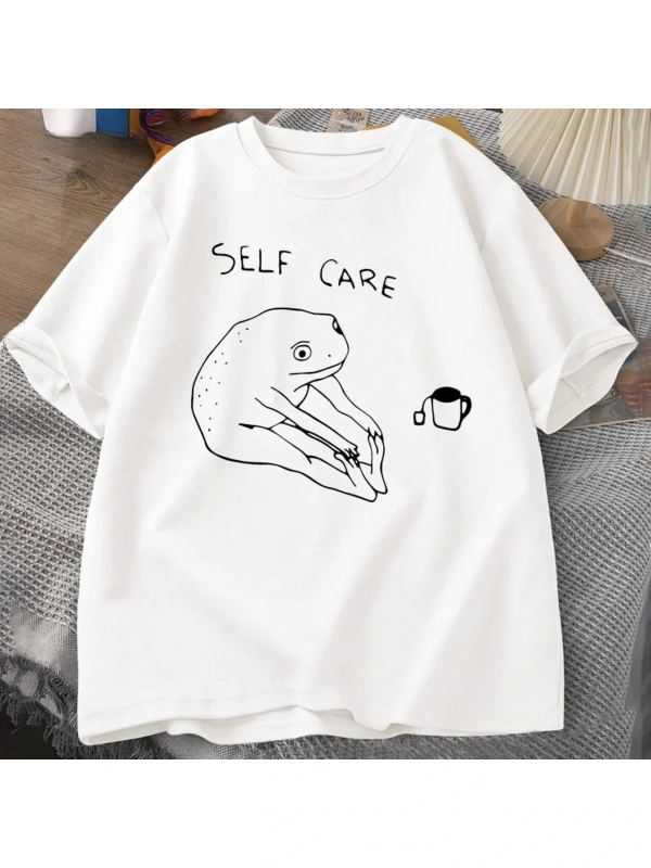Beyaz Komik Kurbağa Öz Bakım Retro Cottagecore Kurbağa baskılı Yaz Yuvar