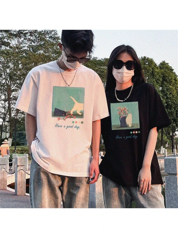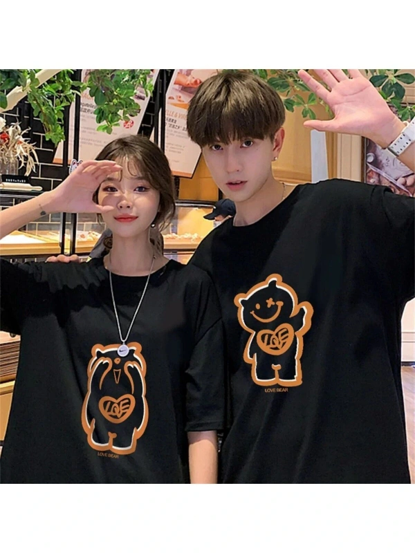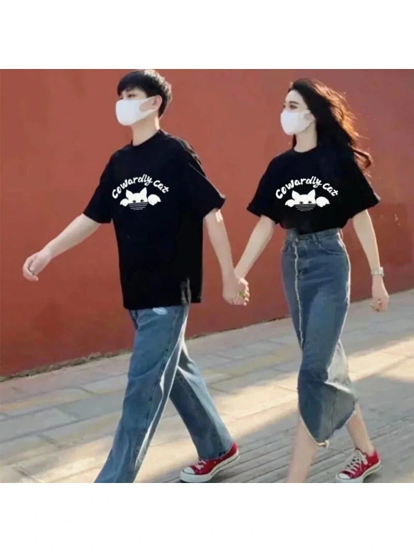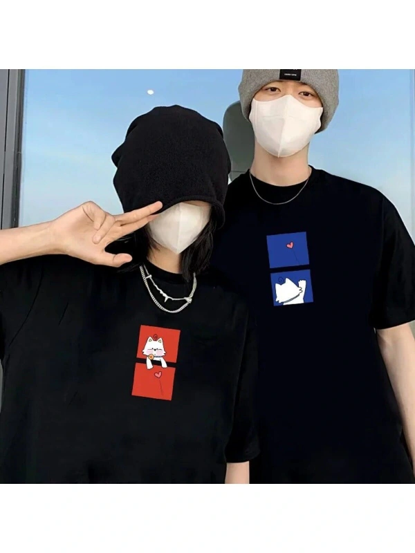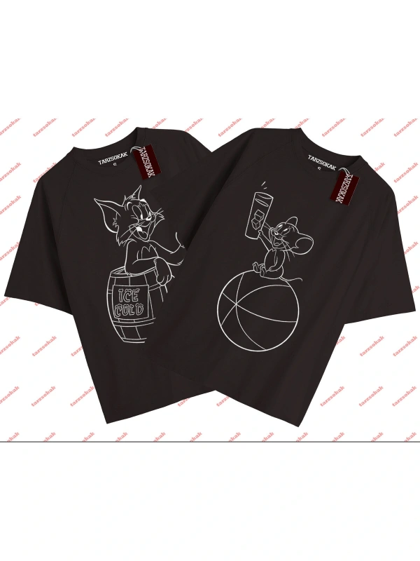 2 Adet Tir Çift Sevgili Tom And Jerry Cartoons Unisex Siyah T-shirt Siyah T-shirt