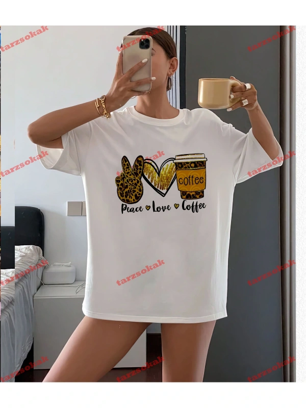 LEOPAR DESENLİ PEACE LOVE COFFE