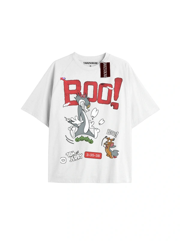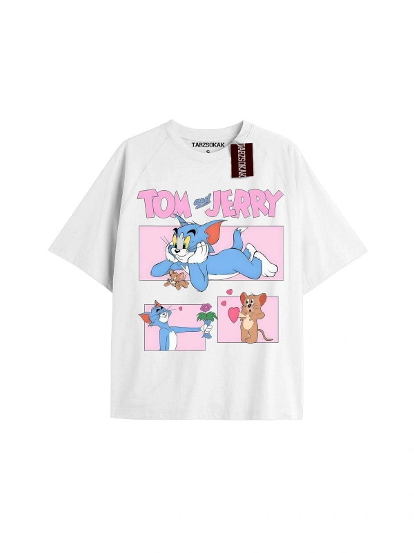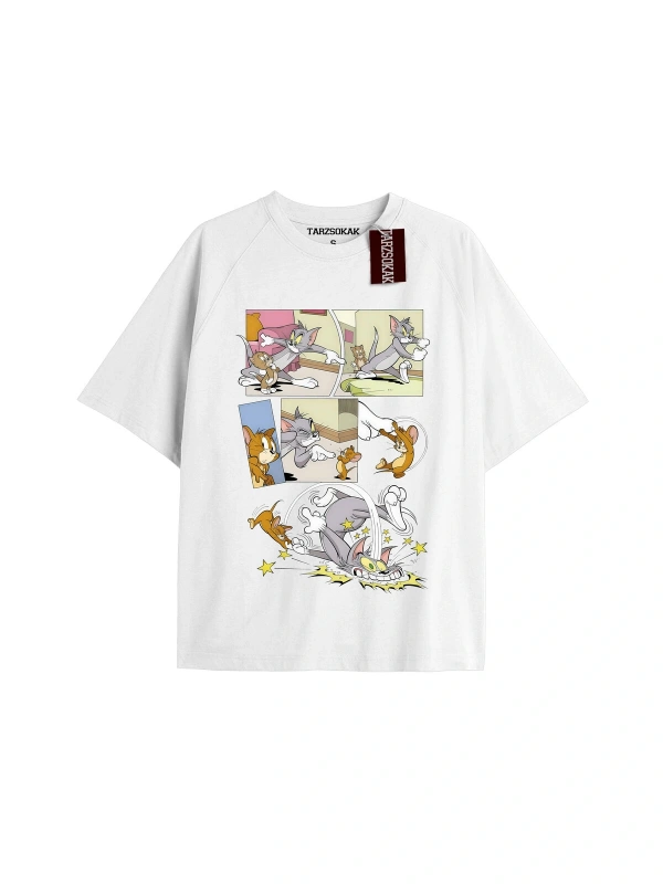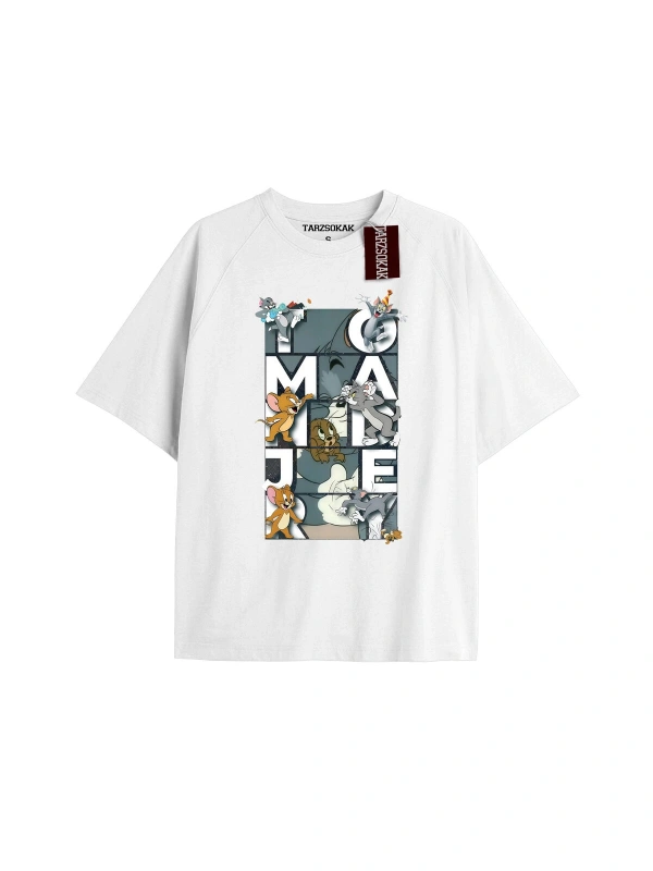 Tom And Jerry Cartoons Unisex Beyaz T-shirt