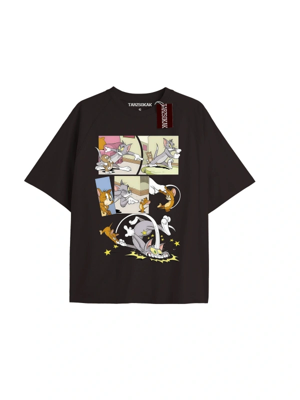 Tom And Jerry Cartoons Unisex Siyah T-shirt