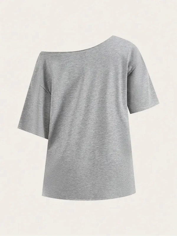 Gri Kadın Düşük Omuz Kayık Yaka Baskılı