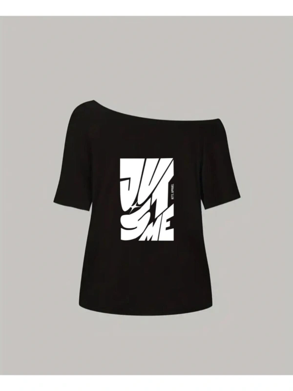 Siyah Kadın Düşük Omuz Kayık Yaka Just Me Baskılı