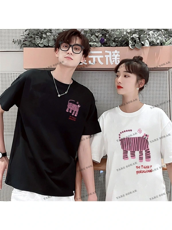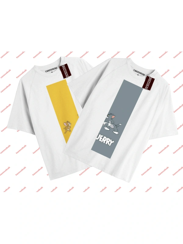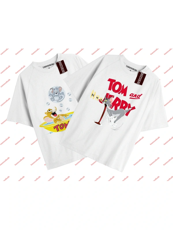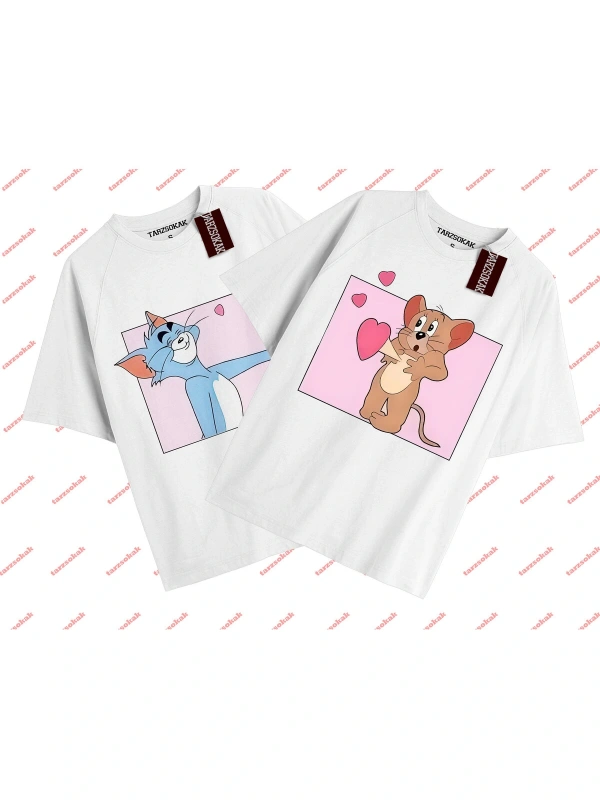 2 Adet Tir Çift Sevgili Tom And Jerry Cartoons Unisex Beyaz T-shirt Beyaz T-shirt