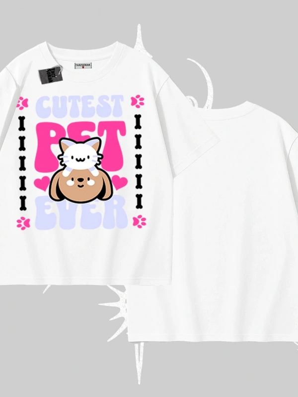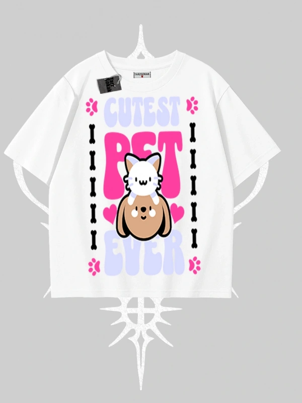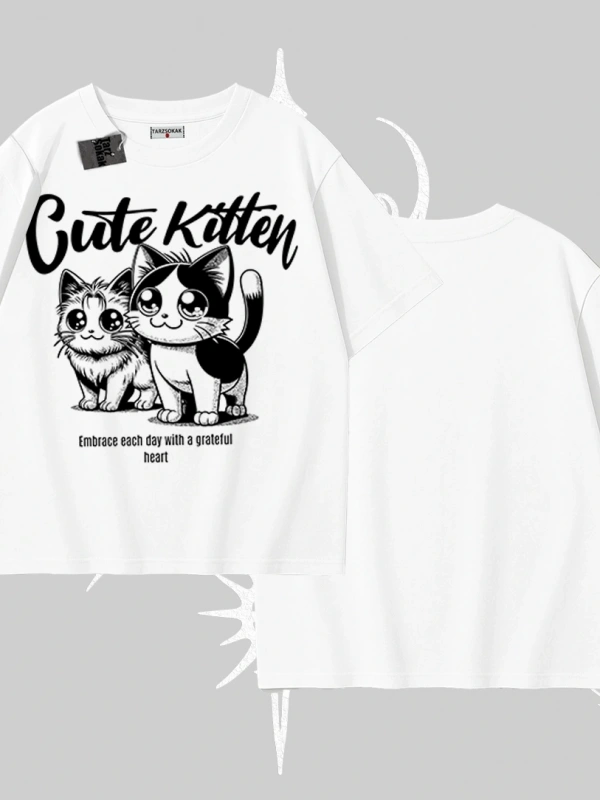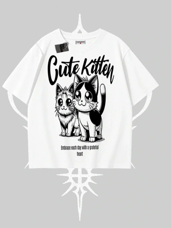 Cute Kitten Yazılı Sevimli Kedi Baskılı Oversize Tshirt