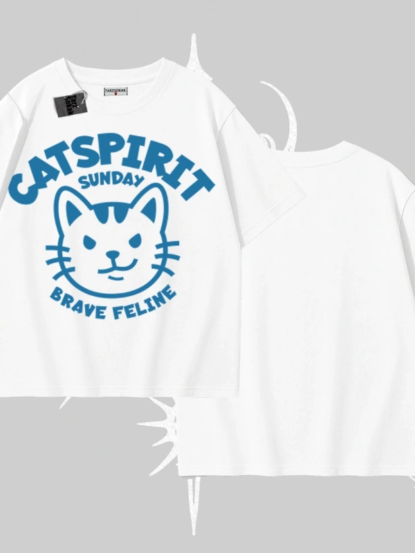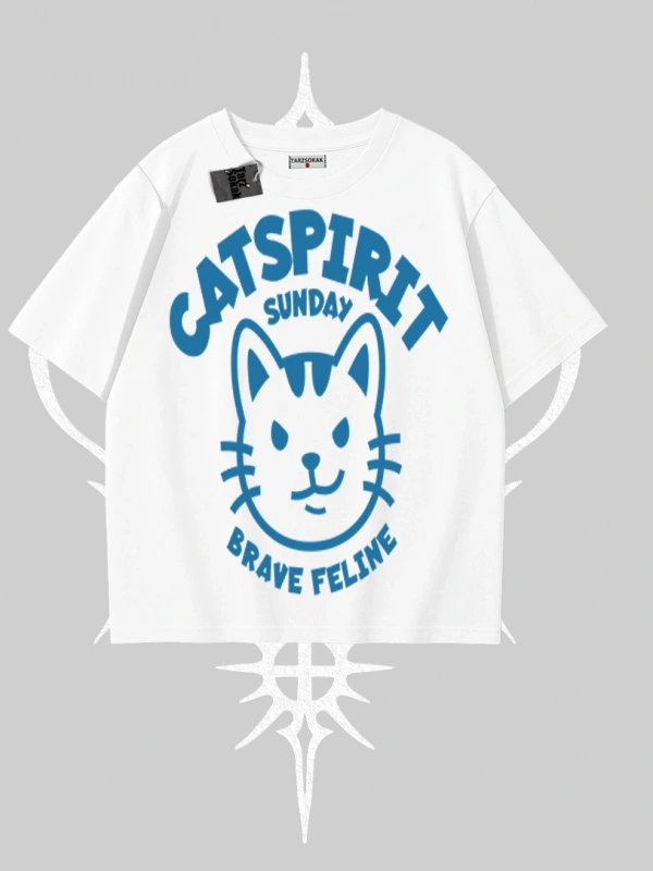 Catspirit Sunday Brave Feline Yazılı Kedi Baskılı Oversize Tshirt