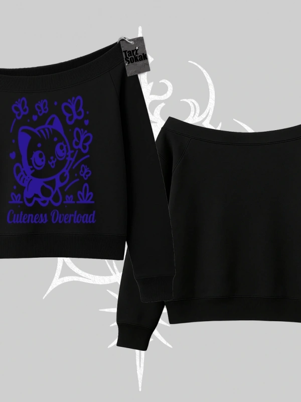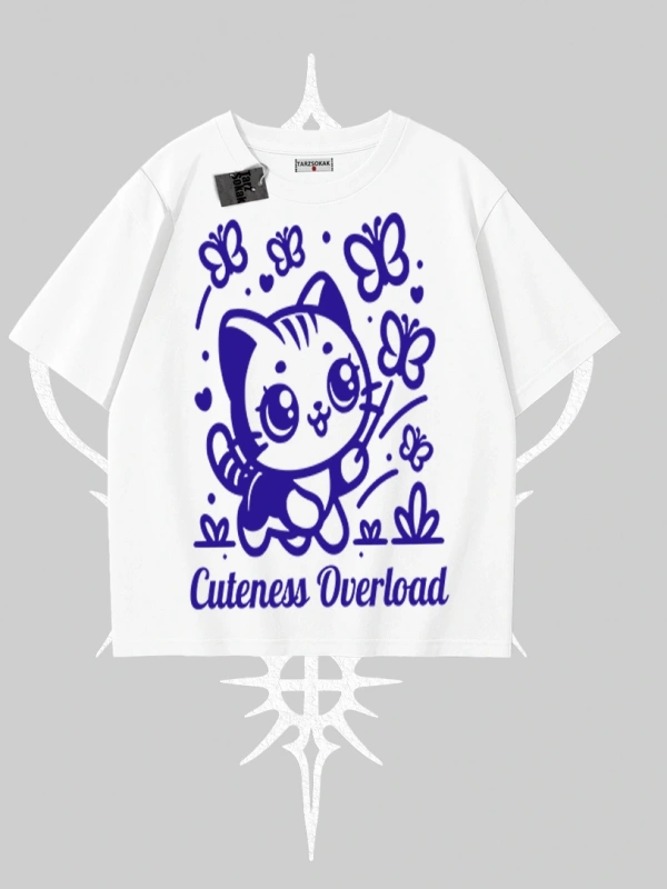 Cuteness Overload Kedi Baskılı Oversize Tshirt