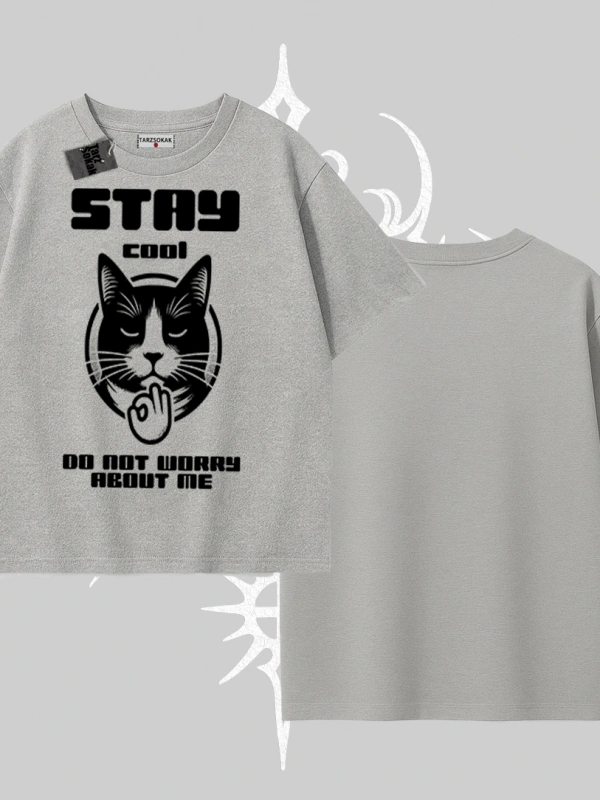 Stay Cool Kedi Baskılı Oversize Tshirt