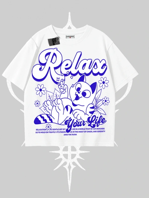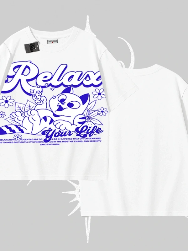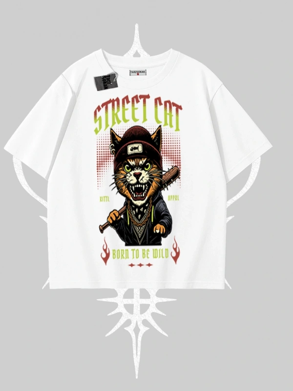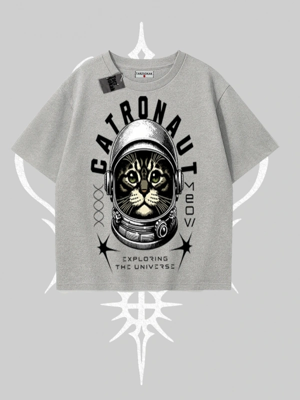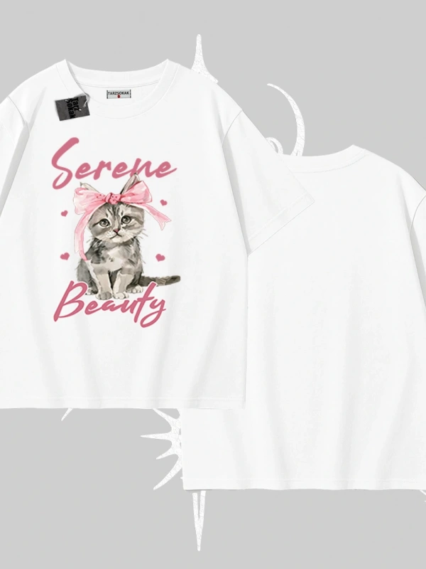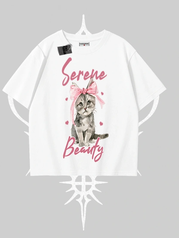 Serene Beauty Kedi Baskılı Oversize Tshirt