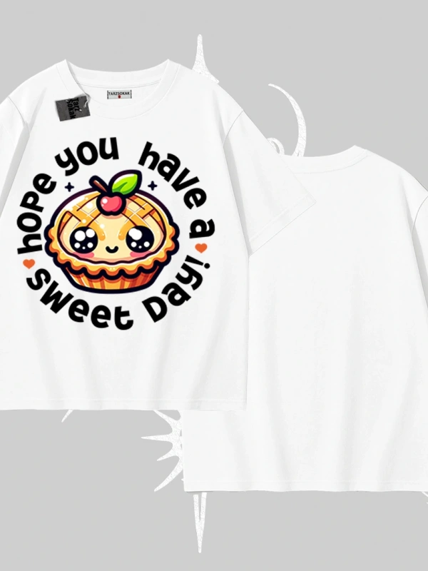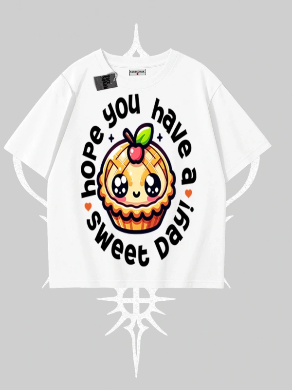 Sweet Day Cupcake Baskılı Oversize Tshirt