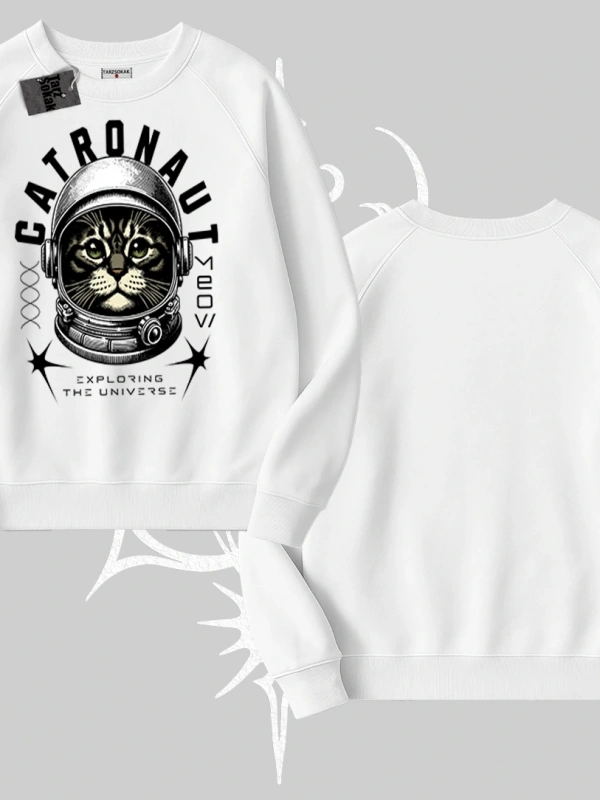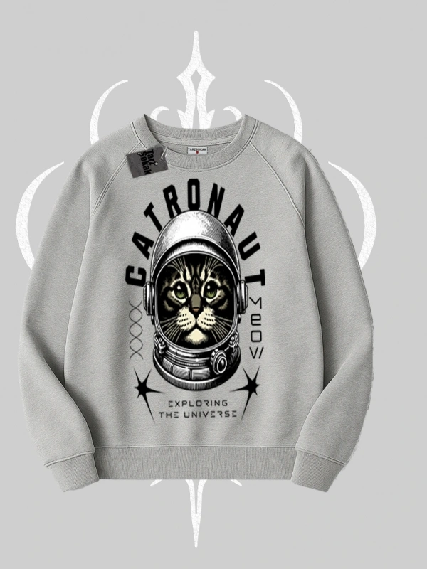Catronaut Kedi Baskılı Biskilet Sweatshirt