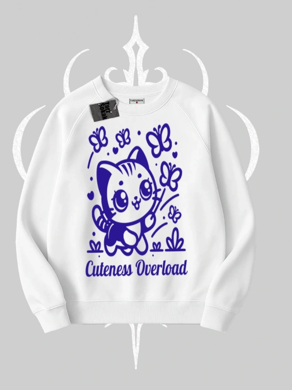 Cuteness Overload Kedi Baskılı Biskilet Sweatshirt