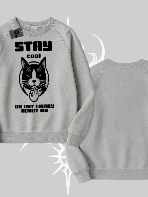 Stay Cool Kedi Baskılı Biskilet Sweatshirt