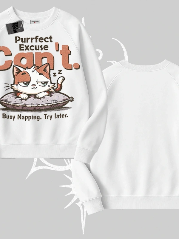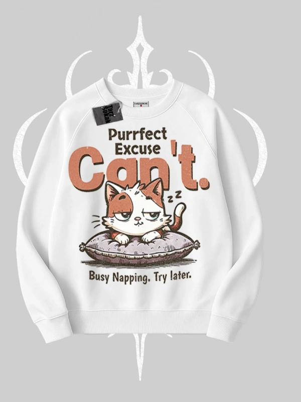 Kedi Baskılı Cant Busy Napping Y2K Biskilet Sweatshirt