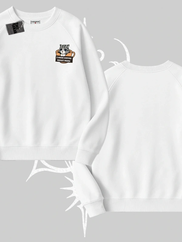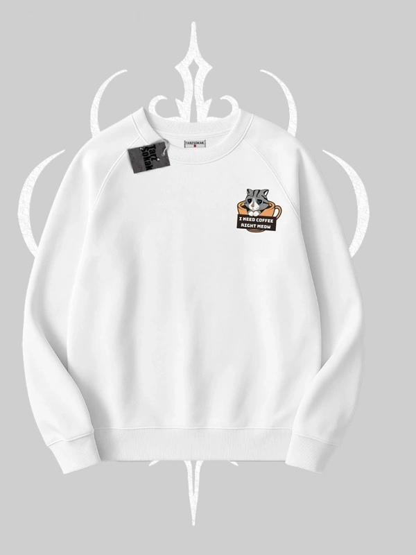 Need Coffee Right Meow Yazılı Kedi Baskılı Biskilet Sweatshirt