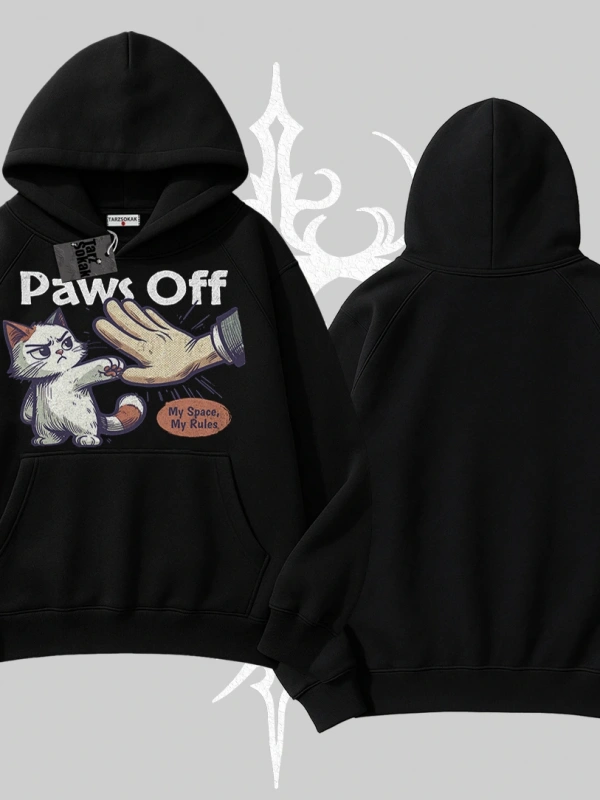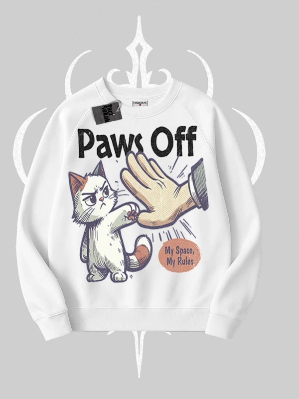 Paws Off Yazılı Kedi Baskılı Streetwear Biskilet Sweatshirt