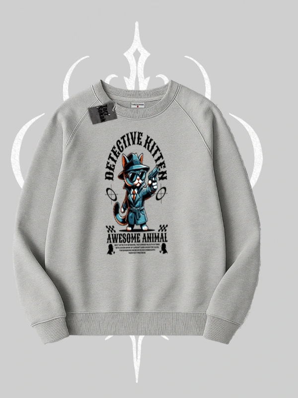Detective Kitten Kedi Baskılı Biskilet Sweatshirt