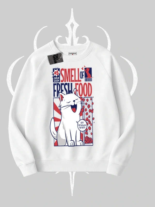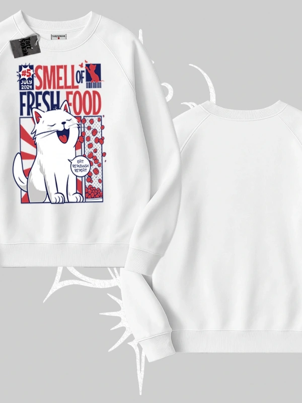Smell of Fresh Food Kedi Baskılı Biskilet Sweatshirt