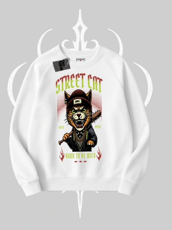 Street Cat Kedi Baskılı Biskilet Sweatshirt