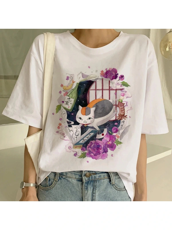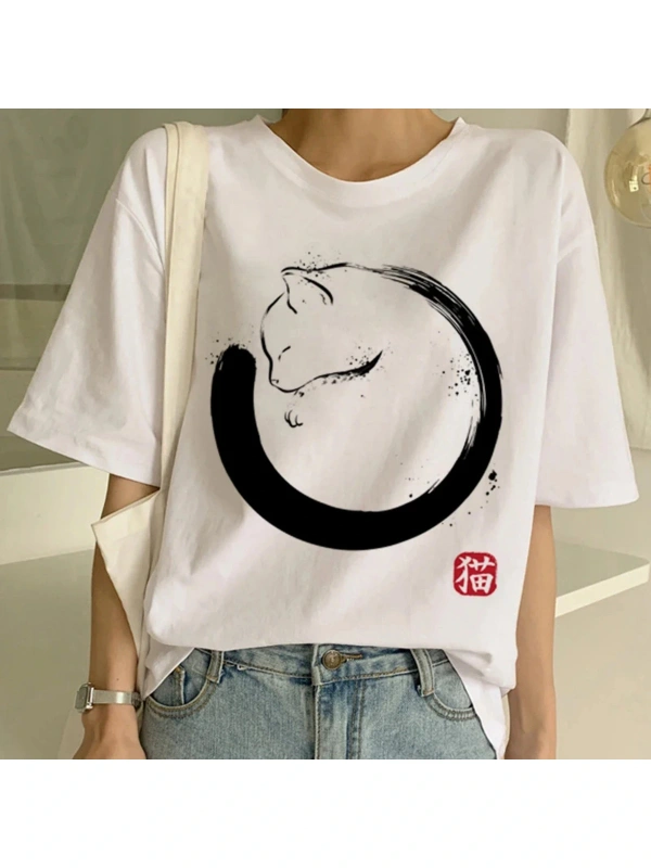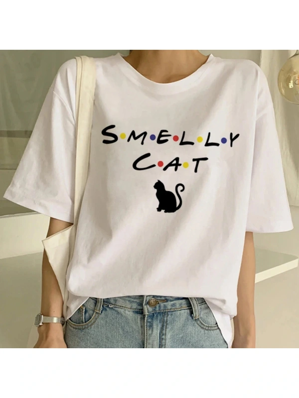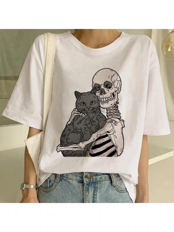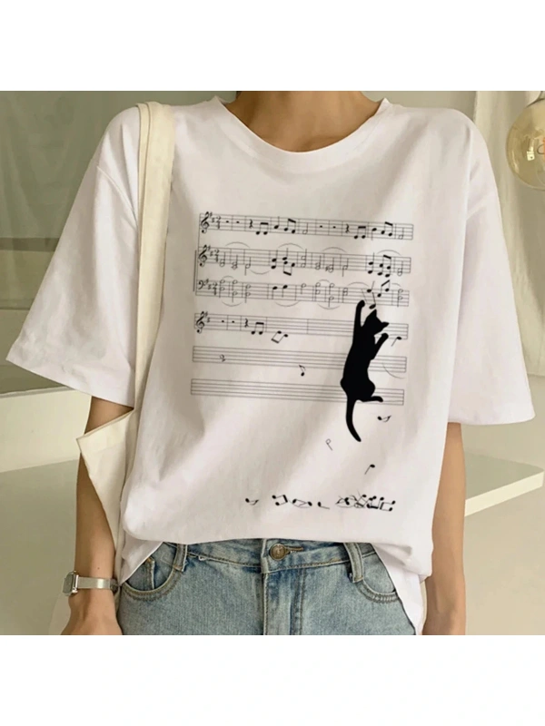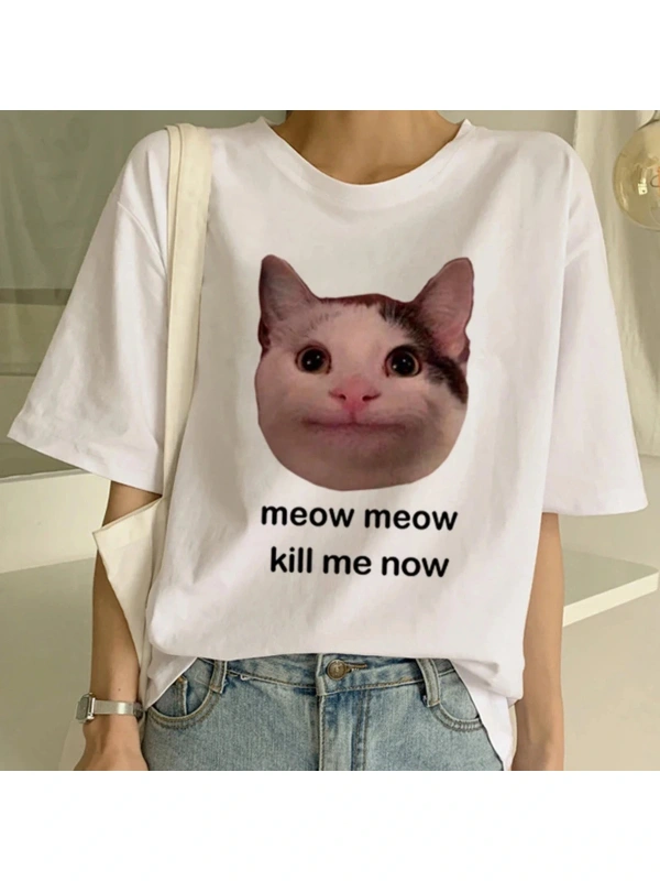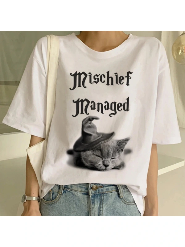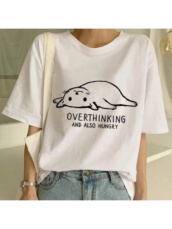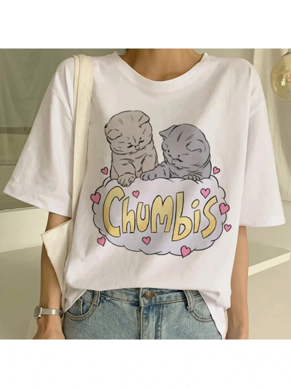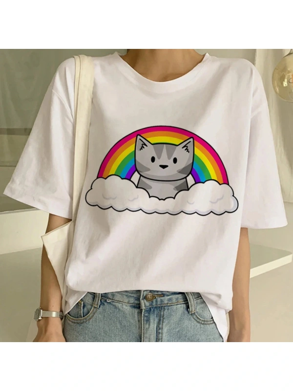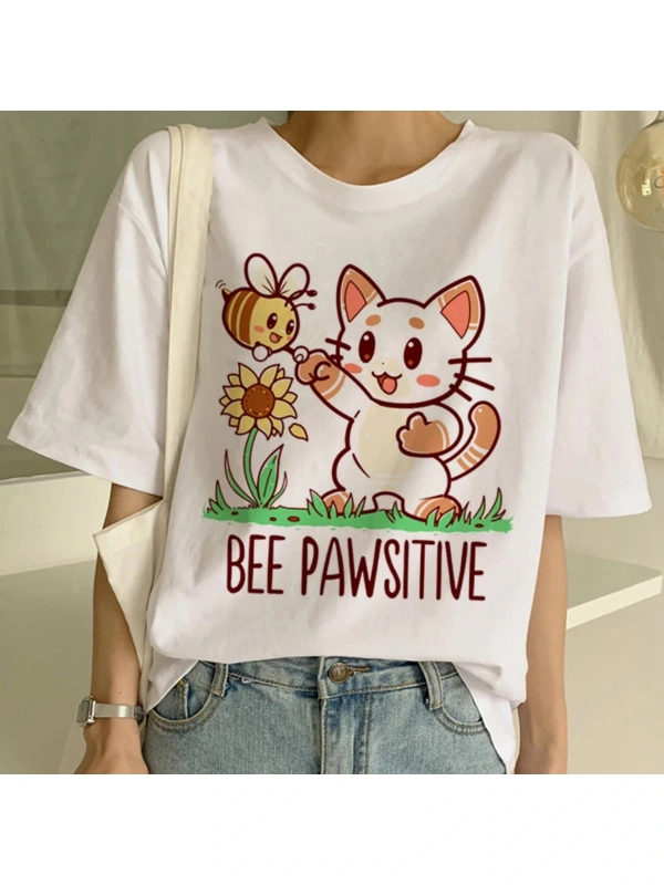 Beyaz Yeni Sevimli Kedi Komik Karikatür Baskı Tshirt Harajuku Kawaii T-shi