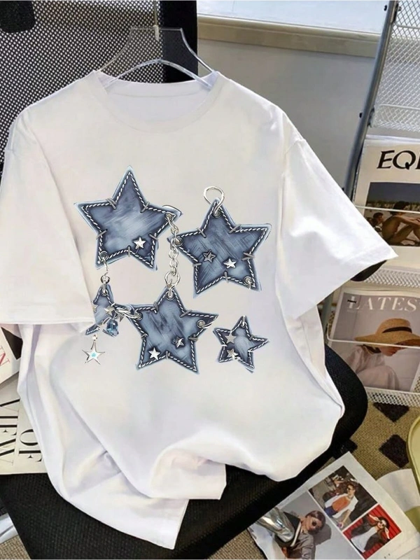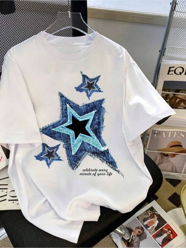 BEYAZ T SHIRT YILDIZ DESENLİ