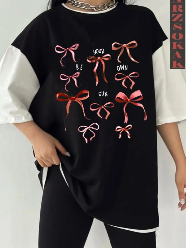 Siyah Oversize Çift Renk BRON TU BE Baskılı Unisex Tshirt