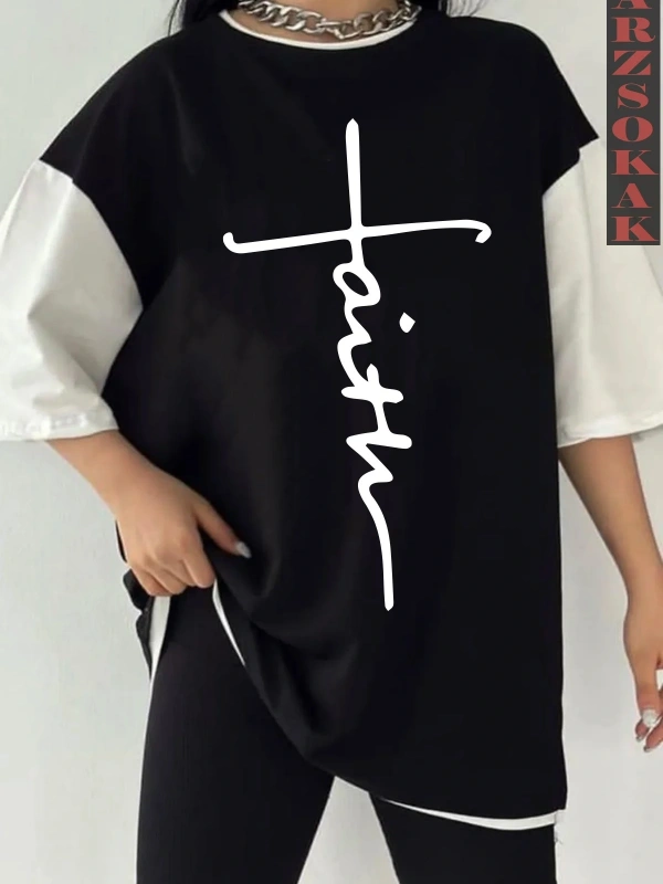 FİYONK DETAYLI BASKILI ÇİFT RENK T SHIRT