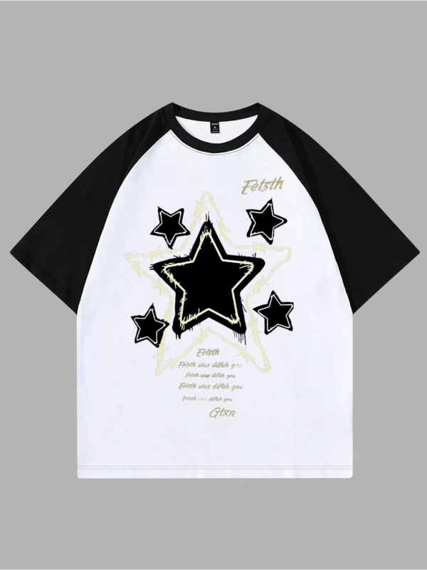 YILDIZ BASKILI ÇİFT RENK T SHIRT