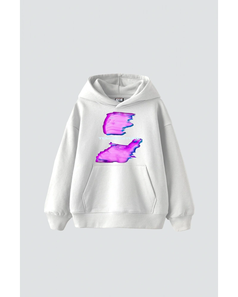 YQYQ----Oversize Mor Saçlı Lila Genç Kız Tasarım Baskılı Unisex Kapüşonlu Sweatshirt Hoodie Beyaz