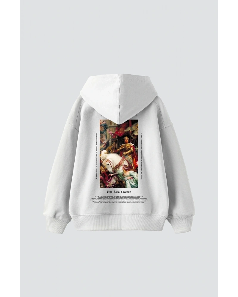 The Two Crowns Baskılı Oversize Unisex Premium Beyaz