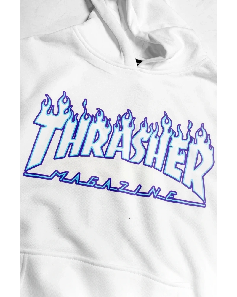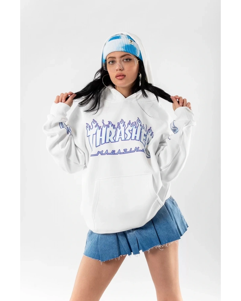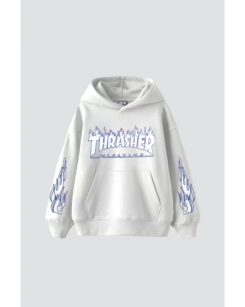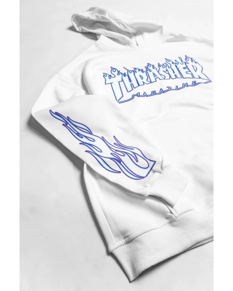 Thrasher Flam Baskılı Oversize Unisex Beyaz