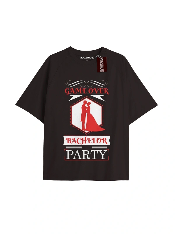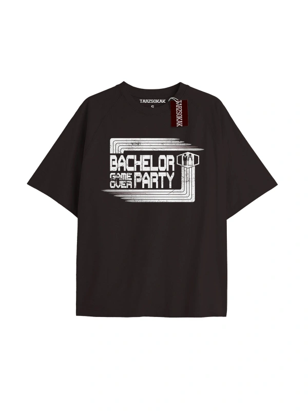 GAME OVWER BACHELOR PARTY Unisex Oversize Yazılı Tshirt SİYAH
