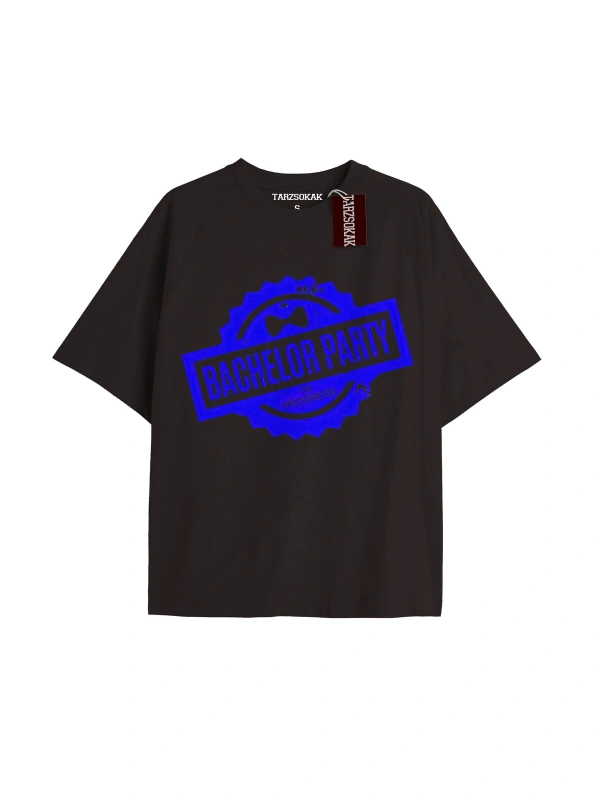 BACHELOR GAME OVER PARTY Unisex Oversize Yazılı Tshirt SİYAH