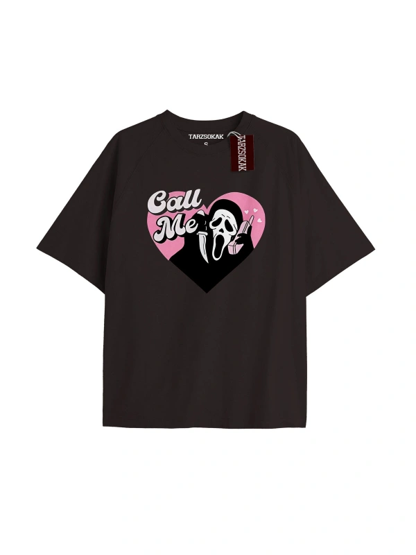 CALLME Unisex Oversize Yazılı Tshirt SİYAH
