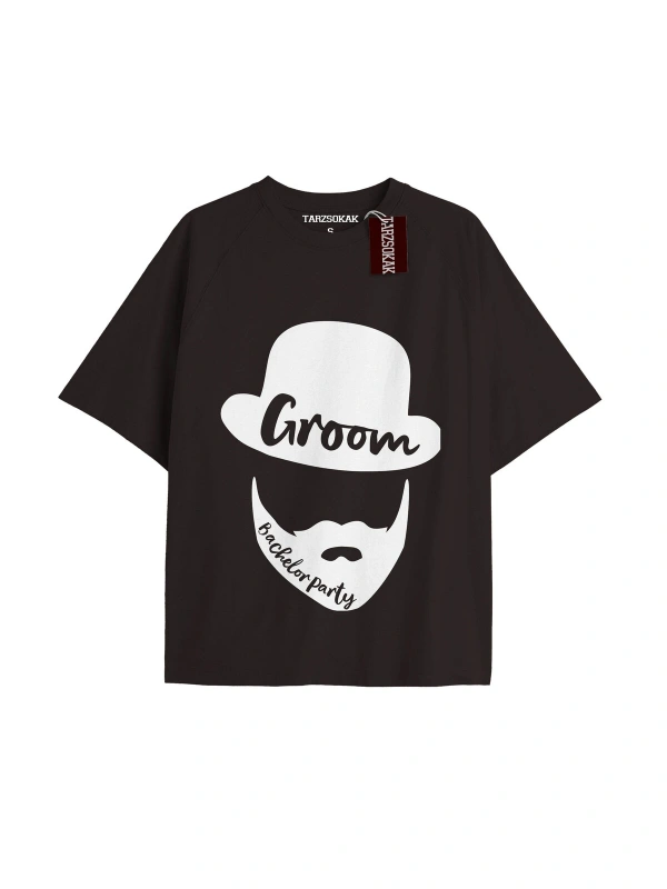 GROOM BACHELOR PARTY Unisex Oversize Yazılı Tshirt SİYAH