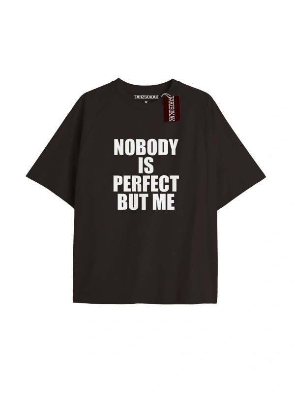 NOBODY IS PERFECT BUT ME Unisex Oversize Yazılı Tshirt SİYAH
