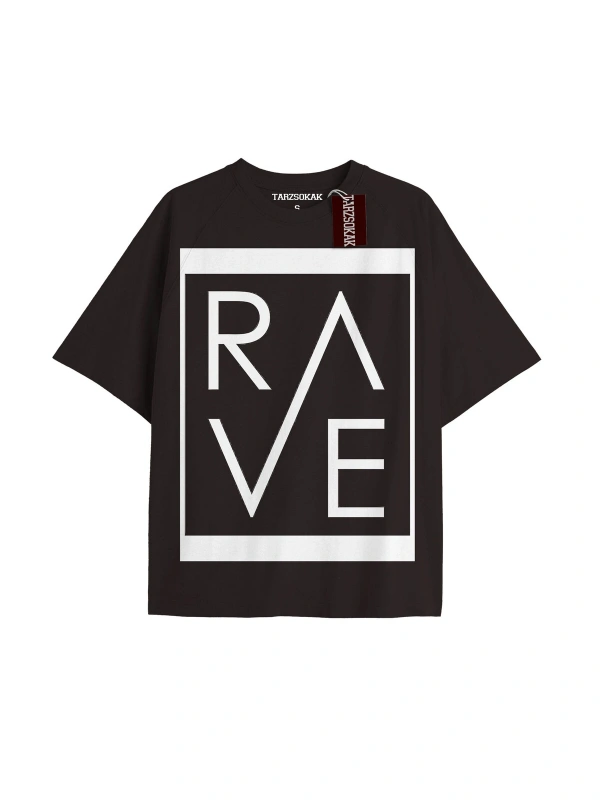 RAVE Unisex Oversize Yazılı Tshirt SİYAH