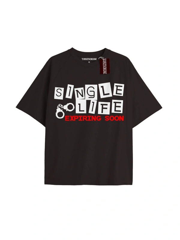 SINGLE LIFE Unisex Oversize Yazılı Tshirt SİYAH