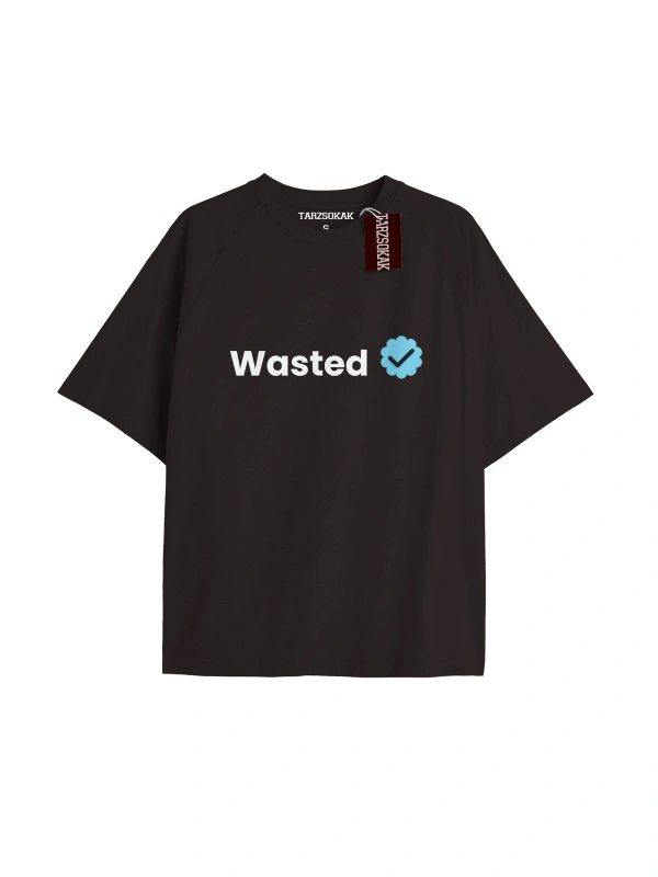 WASTED Unisex Oversize Yazılı Tshirt SİYAH