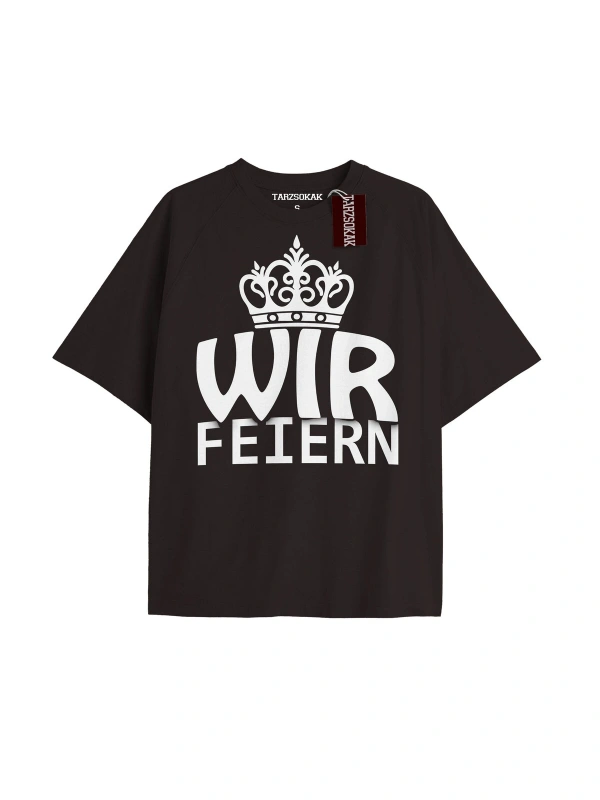 WIR FEIERN Unisex Oversize Yazılı Tshirt SİYAH