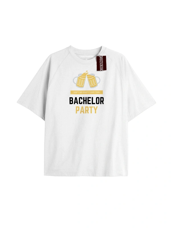 BACHELOR PARTY Unisex Oversize Yazılı Tshirt BEYAZ