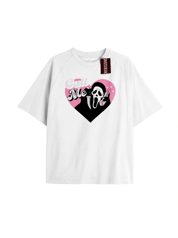 CALLME Unisex Oversize Yazılı Tshirt BEYAZ