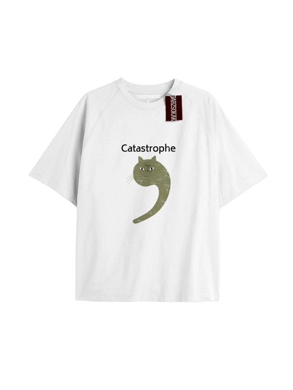 CATASTROPHE Unisex Oversize Yazılı Tshirt BEYAZ