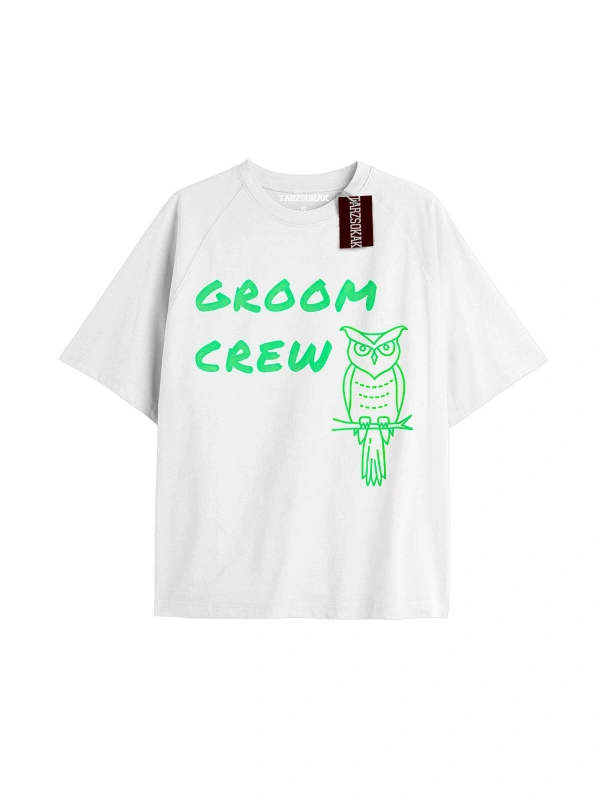 GROOM CREW Unisex Oversize Yazılı Tshirt BEYAZ