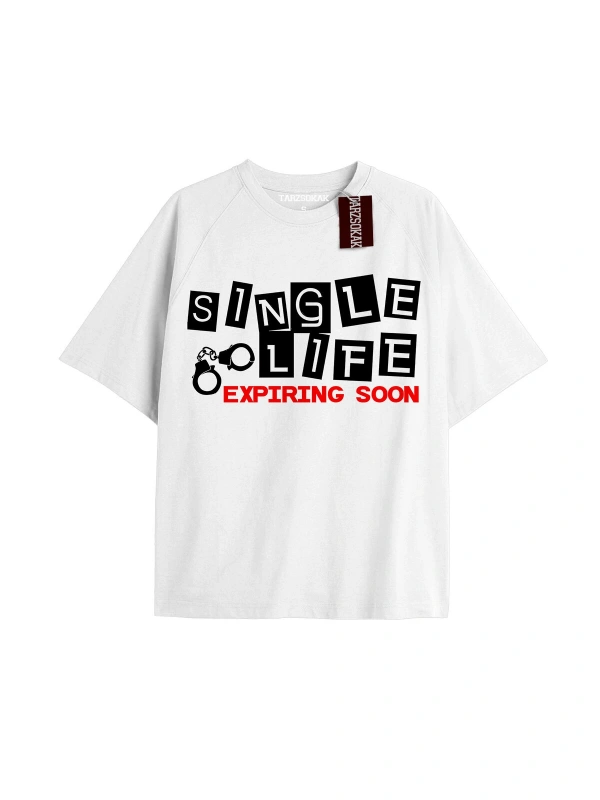 SINGLE LIFE Unisex Oversize Yazılı Tshirt BEYAZ
