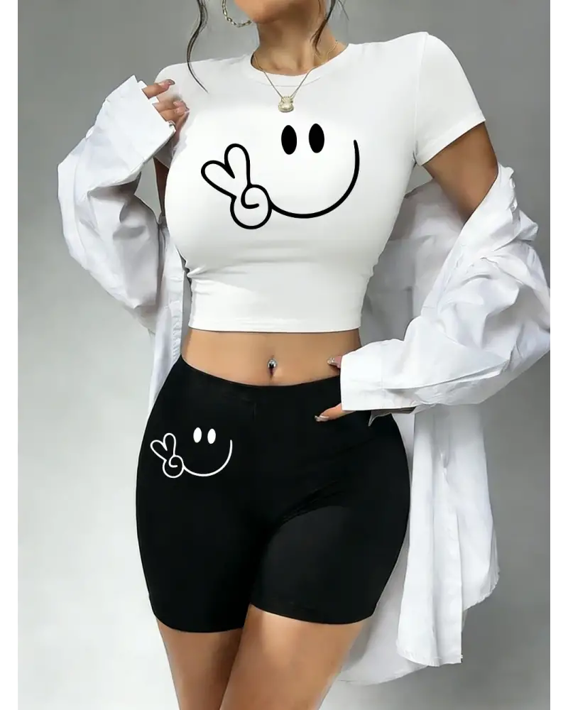 Trend Makas El Desenli Babby TeeTişört Şort Kadın İki Parça Takım Üst Pantolon Dar Kesim Yuvarlak kaliteli malzeme ve konforlu kullanım sunan bir üründür. Günlük kullanım için ideal olup uygun fiyat ve hızlı kargo avantajıyla sunulmaktadır.